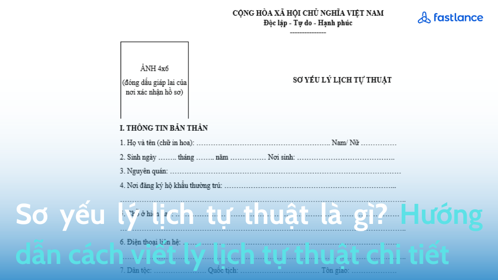 Sơ yếu lý lịch tự thuật là một trong những hồ sơ quan trọng cho quá trình ứng tuyển công việc. Việc hoàn thấy một lý lịch tự thuật chuẩn chỉnh sẽ giúp bạn tăng cho hội trúng tuyển. Vậy cách viết lý lịch tự thuật như thế nào. Hãy cùng Fastlance tìm hiểu chi tiết qua nội dung dưới đây: